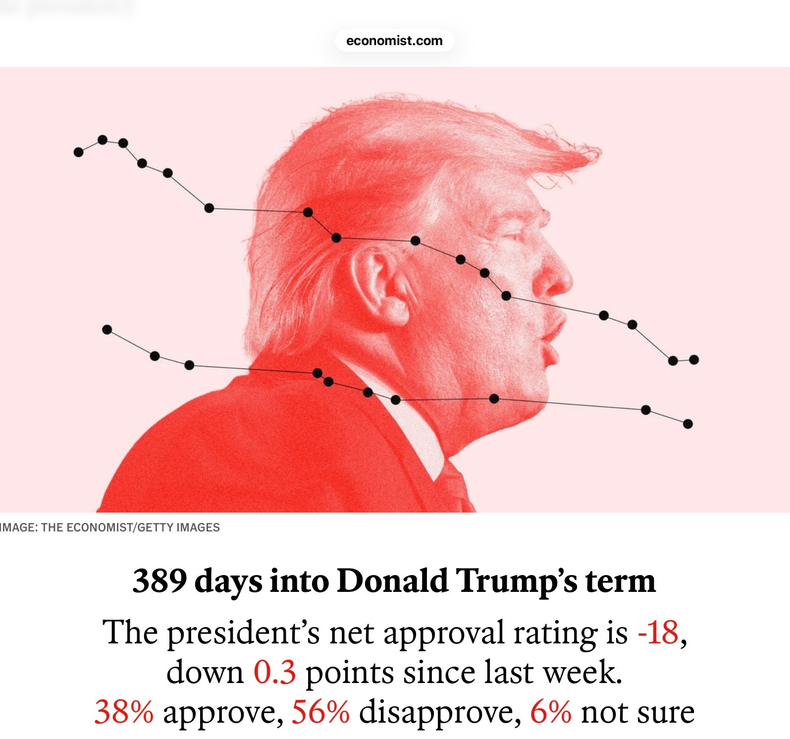 The wisdom of the Founders in preserving state’s rights is today very evident. In an earlier era this was used to defend slavery, but today may save our democratic republic. Of course, Trump will declare any outcome that he doesn’t like (loss of the House, maybe even the Senate) to be illegitimate, but that’s baked to not the cake. In my dream scenario, Trump loses the House (hello, investigations), but doesn’t survive to the end of his term. Vance, who is universally despised, has very little time to do much damage before 2026 elections. A new crop of Democrats (I don’t think much of the current lineup) are our best hope.